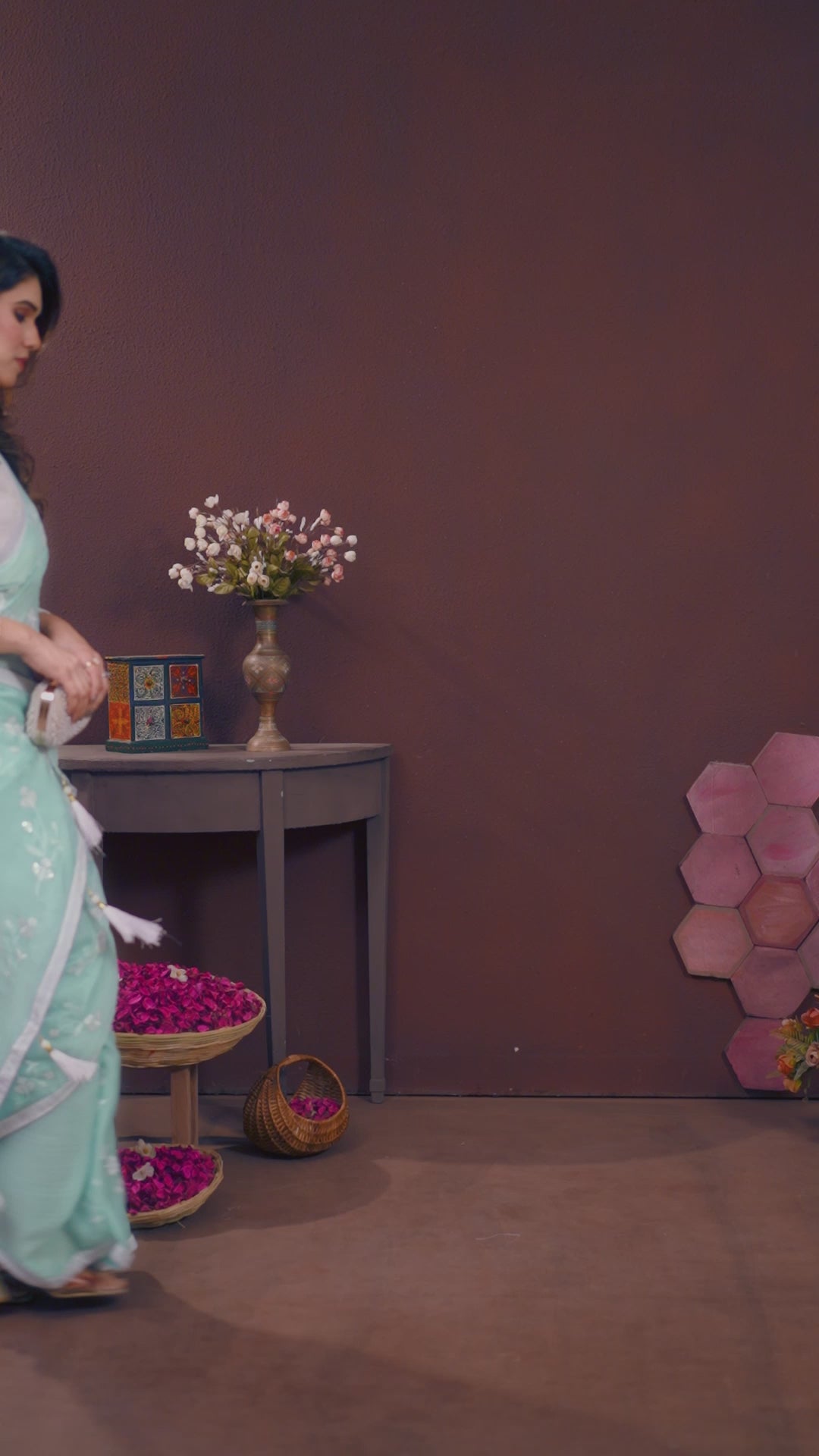 This Light Firozi Embroidered Saree brings a refreshing and stylish look for your festive collection. Made from soft Moss Chiffon, it drapes beautifully while offering a luxurious feel.
